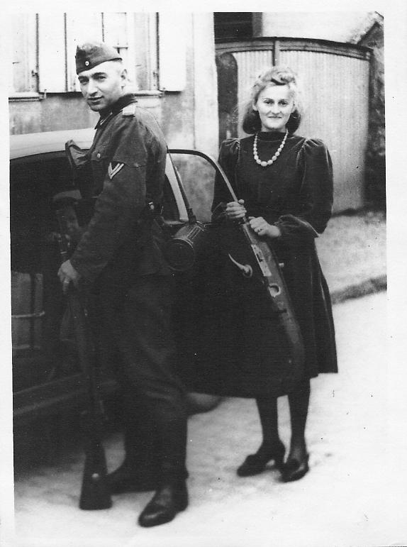 Hochzeitsfoto mit Auguste Detzel (links), Abschied vom Heimaturlaub zurück an die Front (rechts).
