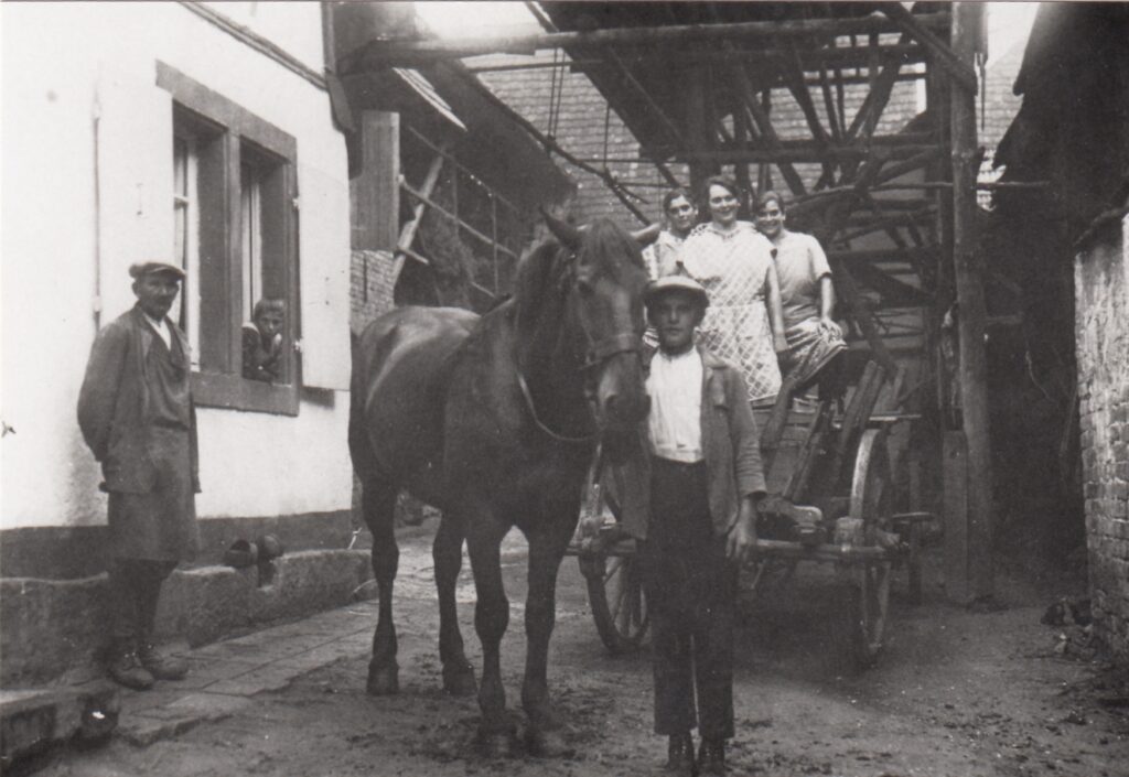 Richard Detzel (beim Pferd) mit dem Vater und vier seiner fünf Schwestern.