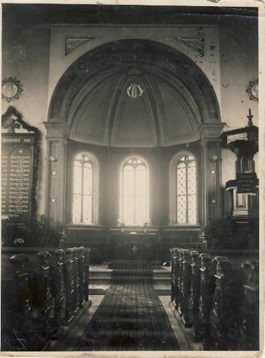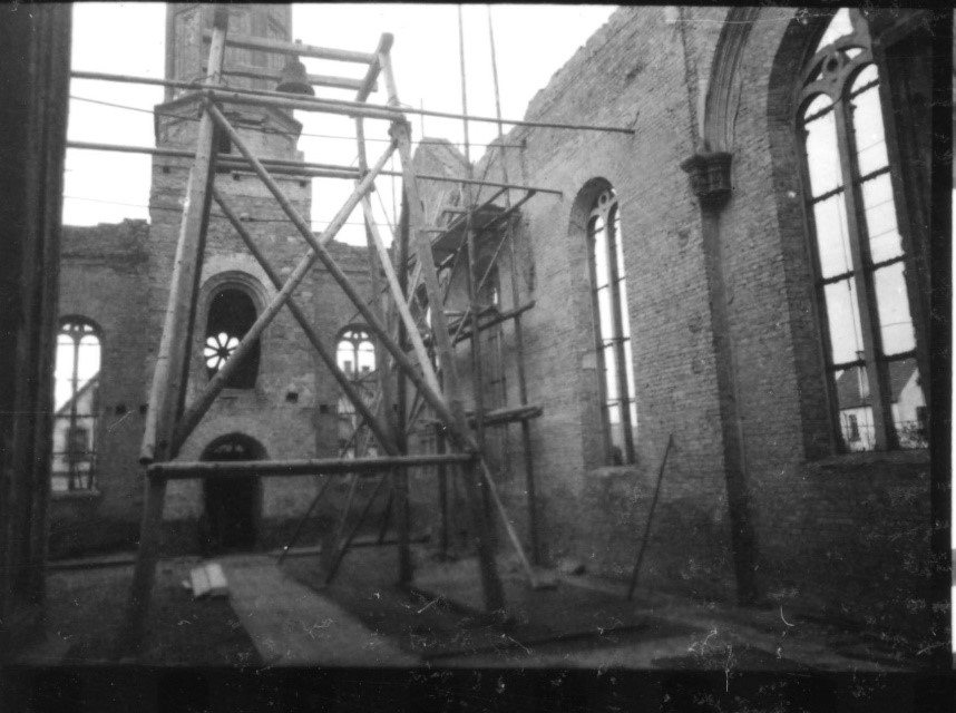 Interessanterweise war der Chorbogen über dem Altarraum mit dem Anfang des Mose-Psalms „HERR GOTT – DU BIST UNSRE ZUFLUCHT FUER UND FUER“ bei der Zerstörung der Kirche stehen geblieben, Anlass für Pfarrer Schäfer dazu seiner Gemeinde in Mechtersheim eine weitere Botschaft zukommen zu lassen: