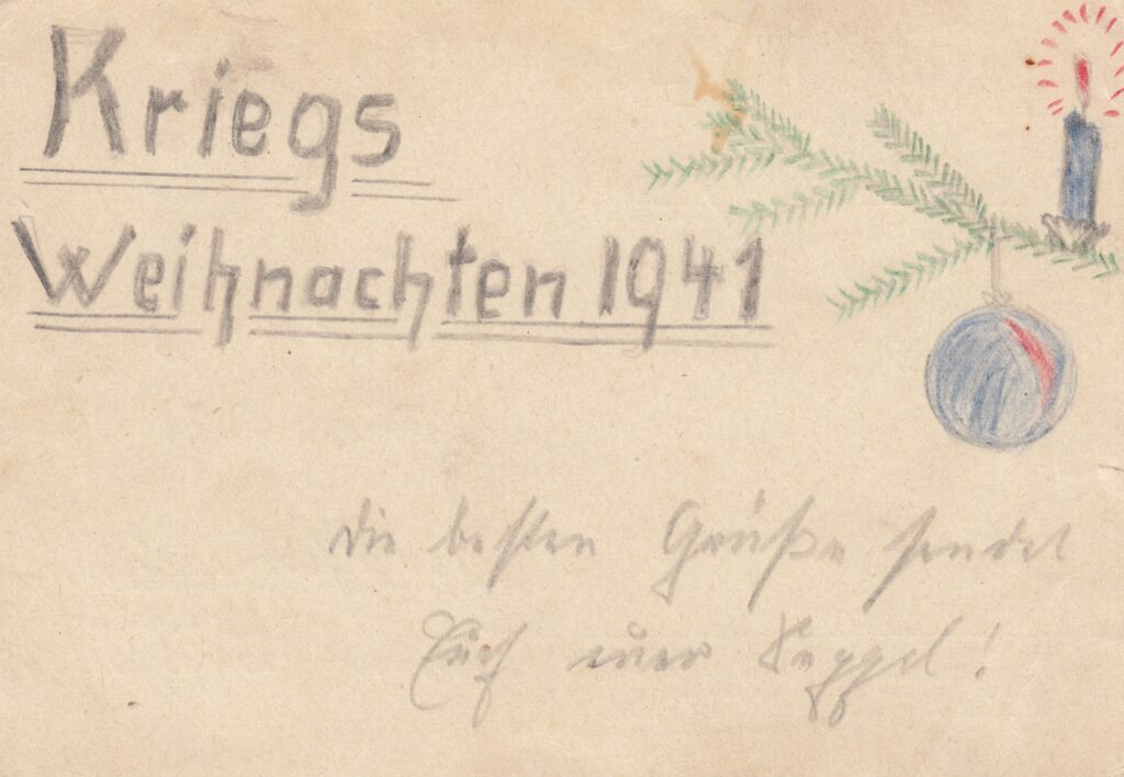 “Ihr wollt also wissen, wo ich bin und was ich mitgemacht habe. Von Anfang Dezember bis Neujahr habe ich an den Kämpfen teilgenommen bei Klino(?). Da war ja allerhand los. Das kann man so nicht schreiben. Dabei gab es fast keine Zeit zum Schreiben. Deshalb wart ihr so lange ohne Post. Jetzt, nachdem wir die Winterstellung bezogen haben, ist es ruhiger. Wir arbeiten die Stellungen aus. Das ist unsere Aufgabe. In der Hoffnung, dass das Gesuch durchgeht, grüßt euch alle recht herzlich euer Sepp”