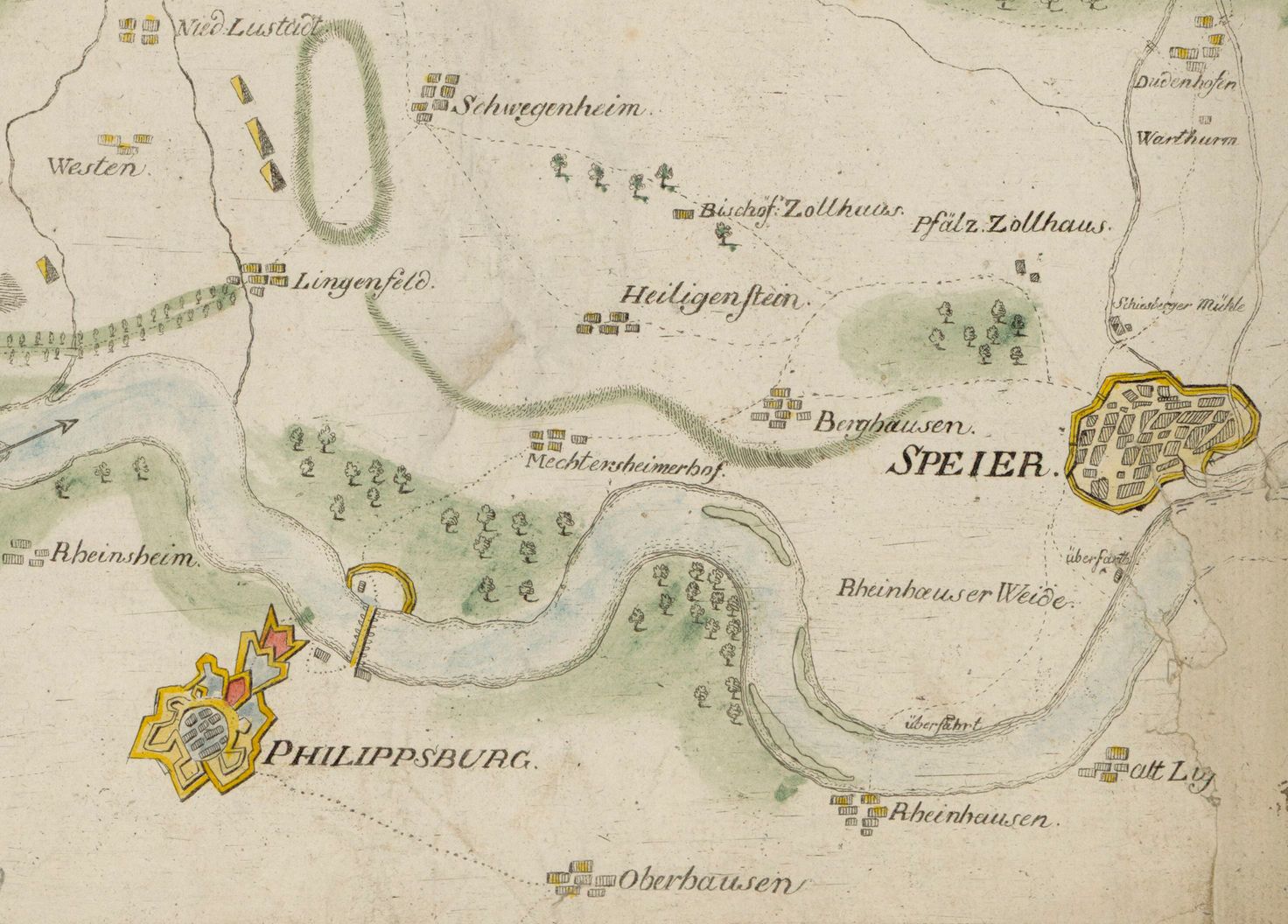 Vorhöltzer (1676-1749) vom Zollhaus eingesetzt werden können, der sich um die bischöflichen Güter in Berghausen und Heiligenstein kümmern könnte. Der Vorschlag, das Hofgut beim Zollhaus „an der Landauer straß“ anzusiedeln, wurde bald darauf fallen gelassen, da es dabei zu Grenzstreitigkeiten mit der kurpfälzischen Regierung kam und von dort Einspruch erhoben wurde. So wurden die Pläne für die Errichtung eines bischöflichen Hofguts fallen gelassen.